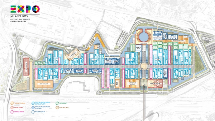 La zona dove si tiene Expo 2015 a Nord di Milano, a soli 200 metri dalla Fiera di Rho, si sviluppa per più di un milione di metri quadrati ed è organizzata secondo la pianta degli antichi accampamenti romani, attraversata da due strade ortogonali chiamate Cardo e Decumano. L’incrocio di queste dà origine a Piazza Italia il centro dell’ Expo simbolicamente il luogo di unione e di incontro dell’Italia con gli altri paesi del Mondo. Abbiamo sempre sentito parlare di Padiglioni, ma non tutti sanno che ai quattro estremi del cardo e del Decumano sorgeranno 4 strutture importanti per Expo 2015: la collina mediterranea da cui si potrà ammirare tutta la zona in maniera panoramica, grazie alle rampe che portano alla cima alta circa 12 metri e circondata da varie specie di vegetazione mediterranea.