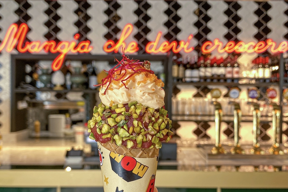 Chi ama il cono gelato potrà lasciarsi tentare da una provocatoria versione salata: il Cono del Macellaio. Due tartare di Black Angus servite su parigina, avvolte in minuscole e leggere sfere di riso croccanti con cremoso al wasabi, alga wakame e salsa teryiaki. La perfetta fusione tra lo street food per eccellenza della stagione estiva e la carne, da condividere sul tavolo social presente in ogni locale firmato Pane & Trita.