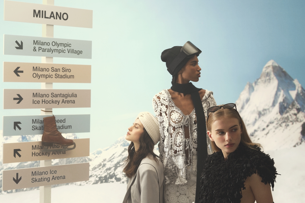 La campagna di comunicazione è stata realizzata in collaborazione con Milano & Partners, e scattata da Filippo Tarentini con lo styling di Sofia Brini. Le immagini evocano naturalmente Cortina, le montagne, le attrezzature sportive e i cinque colori olimpici. Il racconto visivo inserisce la moda nel programma dell’Olimpiade Culturale, trasformando la città in un palcoscenico diffuso dove arene di ghiaccio e passerelle condividono la stessa tensione verso l’eccellenza.