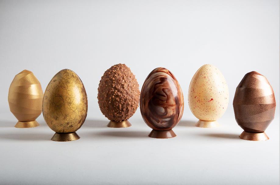 La giovane Pastry Chef Elisa Sommariva del Savini Milano 1867 interpreta il grande classico pasquale con una collezione esclusiva di sei uova in fine cioccolato Valrhona. È un omaggio a Milano capitale del design l’uovo dalla superficie sfaccettata proposto in due varianti: cioccolato fondente Guanaja 70% e cioccolato al latte Blond Dulcey 32%, decorate rispettivamente con raffinate sfumature in bronzo e oro. Sempre in cioccolato fondente Guanaja 70% l’elegante uovo “placcato” oro, ispirato all’antica credenza degli alchimisti che accomunavano l’uovo alla pietra filosofale, capace di trasformare i metalli vili in oro. Per chi ama le consistenze più decise, l’uovo di cioccolato al latte si arricchisce di un croccante pralinato alla nocciola. Tocco glamour per l’uovo variegato ai tre cioccolati (fondente, al latte e bianco), la cui superficie liscia e lucida rievoca un marmo pregiato, e al cioccolato bianco Ivoire, un richiamo al prezioso uovo di struzzo e alla sua ricca simbologia. Si acquistano al Savini Caffè in Galleria Vittorio Emanuele II, a partire da € 15.