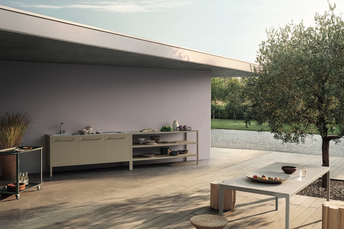 Gran Sasso di Midj è un tavolo rettangolare in Baydur, o cemento spatolato, dalla forte presenza scenica.