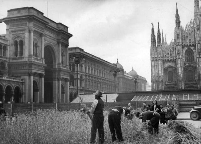 L'ultima volta che il simbolo della città è stato invaso da grano e sementi è stato nel 1940, a seguito della drammatica situazione causata dal conflitto, gli agricoltori trasformarono giardini e piazze in campi coltivati per provvedere in maniera autonoma alla sussistenza dei cittadini. Ovviamente questa volta la rivoluzione verde di Piazza Duomo ha altre finalità: educative e culturali.