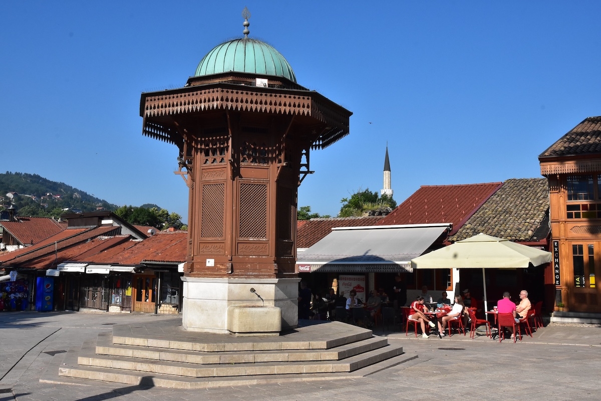 In un momento storico come questo, così profondamente lacerato da conflitti che amplificano la distanza tra Oriente e Occidente e creano una spaccatura tra popoli fino a ieri dialoganti e capaci a vivere fianco a fianco, in troppi dimenticano le lezioni del passato. Non più tardi di 30 anni fa l’Europa venne sconvolta da una guerra fratricida che seguì all’implosione dell’ex Jugoslavia. La guerra di Bosnia ed Erzegovina fu una macchia indelebile nella storia del nostro continente, incapace di fermare quel bagno di sangue. Tra tutti gli episodi che caratterizzarono quegli anni bui il più significativo fu certamente l’assedio di Sarajevo protrattosi dall’aprile del 1992 al febbraio del 1996. Fino ad allora la capitale bosniaca era stato uno dei migliori laboratori di integrazione tra cultura occidentale e cultura orientale, fino a ospitare nel 1984 i Giochi olimpici invernali, tuttora ricordati tra i più belli e coinvolgenti di sempre, con l’iconica torre che ancora svetta sulla città a memoria di quei giorni così carichi di significato. Sarajevo ha saputo risollevarsi con una resilienza e una visione del proprio ruolo che ha dell’incredibile. Oggi, mentre il mondo impazzito tutto attorno costruisce muri e spara razzi, qua si respira un’aria diversa. Una linea tracciata per terra sulla via principale del piccolo centro storico separa idealmente, ma senza dividere, la zona Est da quella Ovest. Da un lato minareti e moschee che svettano nel suq disseminato di bazar, botteghe artigiane di ferro battuto, piccole biblioteche e locali dove sorseggiare il thè o il caffè turco, oppure mangiare i classici cevapcici (carne macinata e speziata, cotta sulla brace). Dall’altro lato, nell’arco di poche centinaia di metri, sorgono una chiesa cattolica, una ortodossa e una sinagoga. Ma anche catene di abbigliamento occidentale, locali alla moda e soprattutto i mercati di frutta e verdura, che durante l’assedio furono tra i target preferiti delle milizie serbo-bosniache asserragliate sulle colline che circondano la città. Oggi forse proprio questi banchi così ricchi di colore rappresentano più di ogni altro luogo il riscatto di Sarajevo, che ha saputo voltare pagina, senza però dimenticare il suo passato.